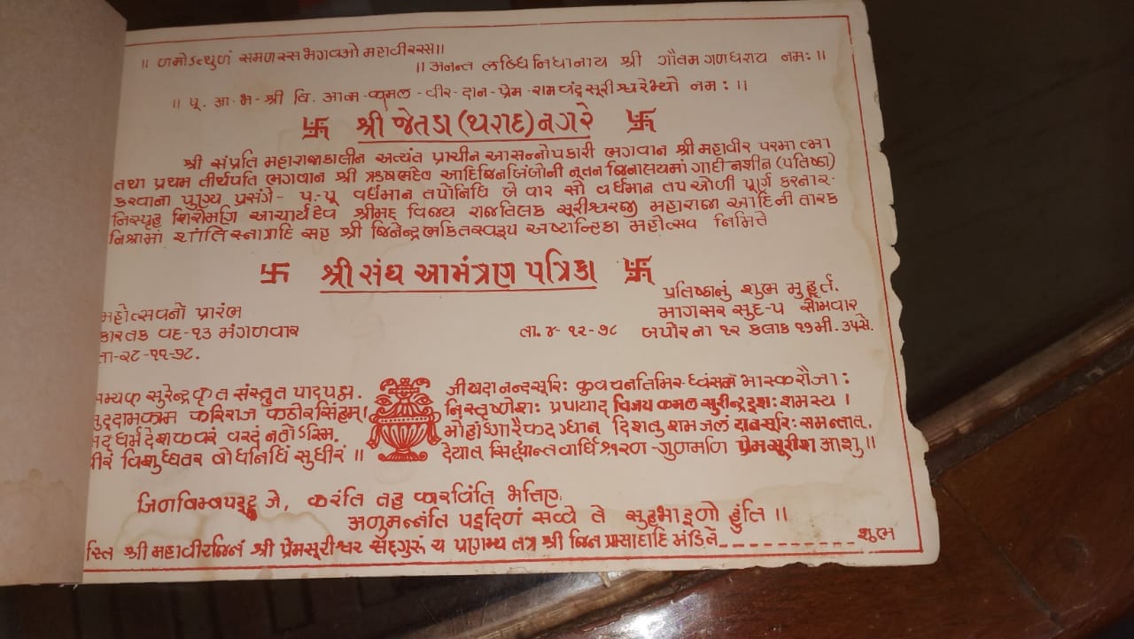 જેતડા પ્રતિષ્ઠાની વર્ષો પૂર્વેની જૂની પત્રિકા