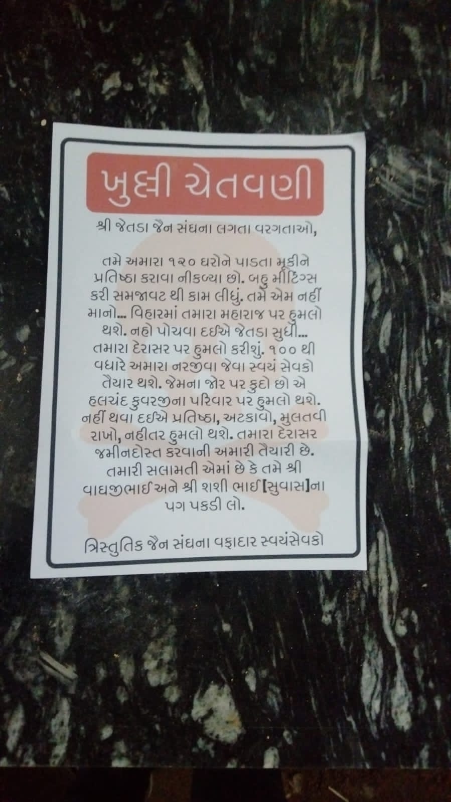 ત્રિસ્તુતિક દ્વારા છાપામાં અપાયેલ નિવેદેન