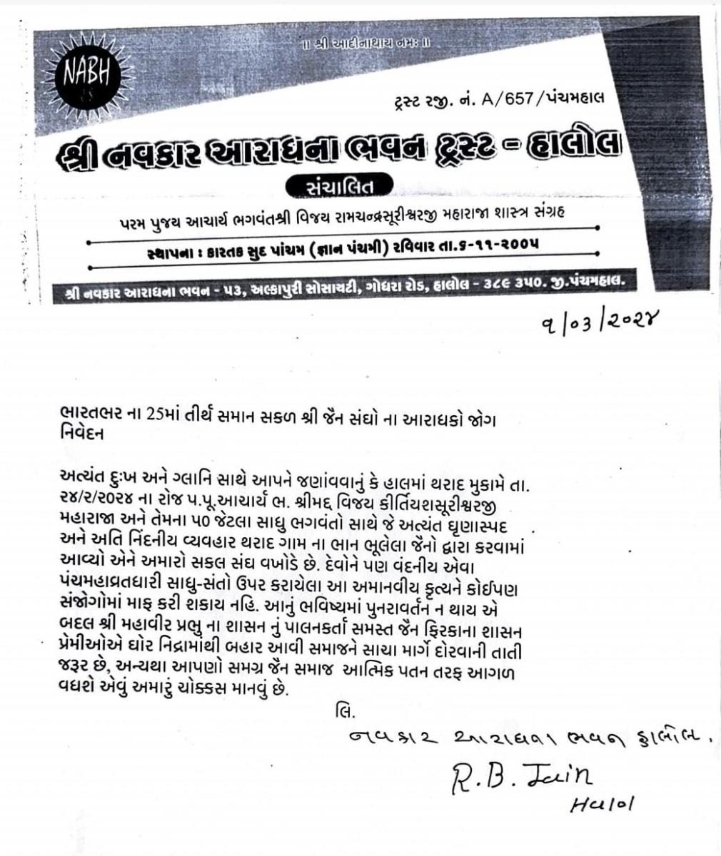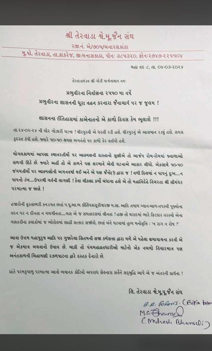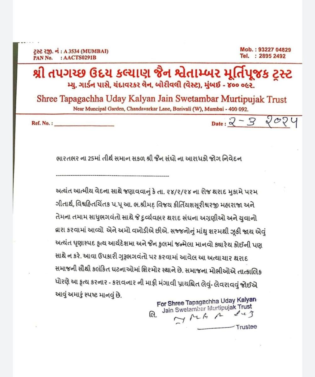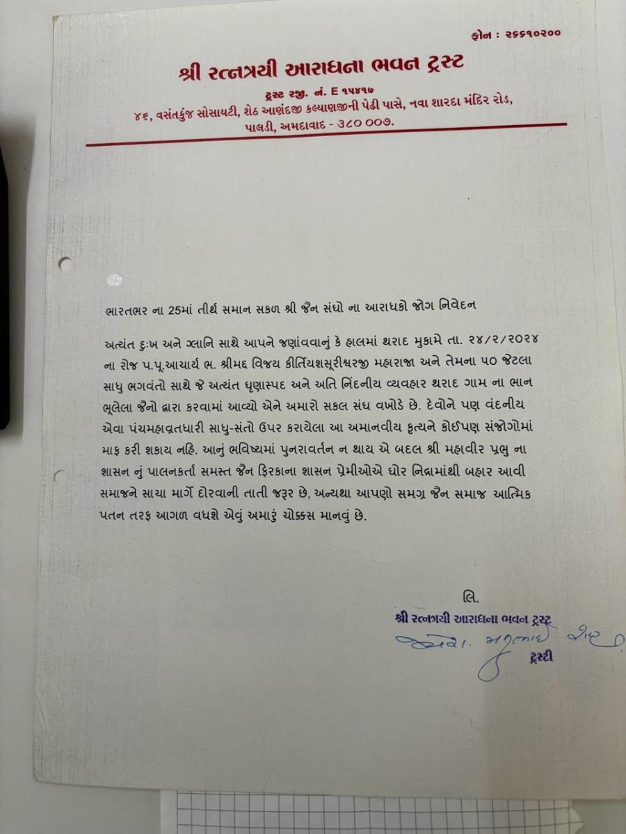 ઘટના બાદ સત્ય બતાવતું ભોરોલ તીર્થનું નિવેદન