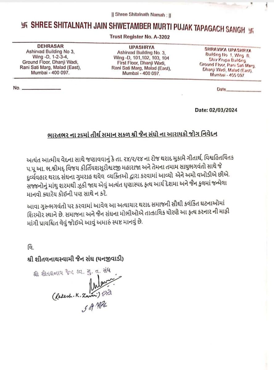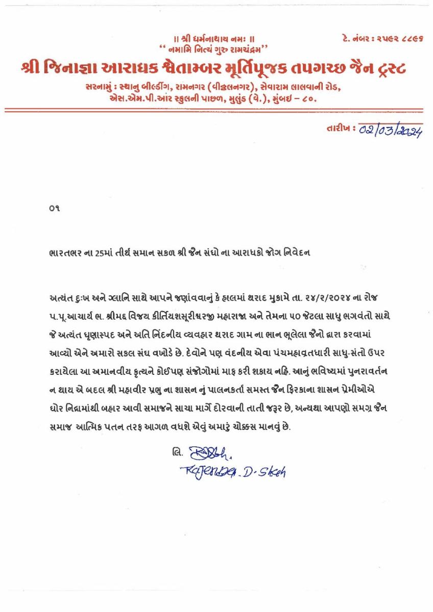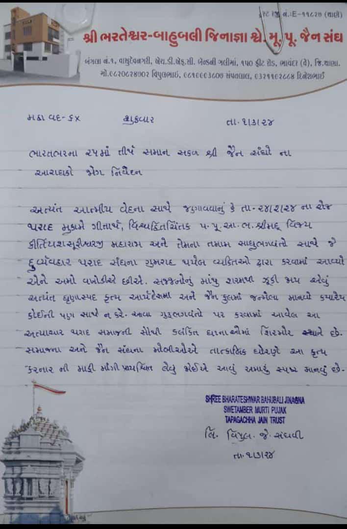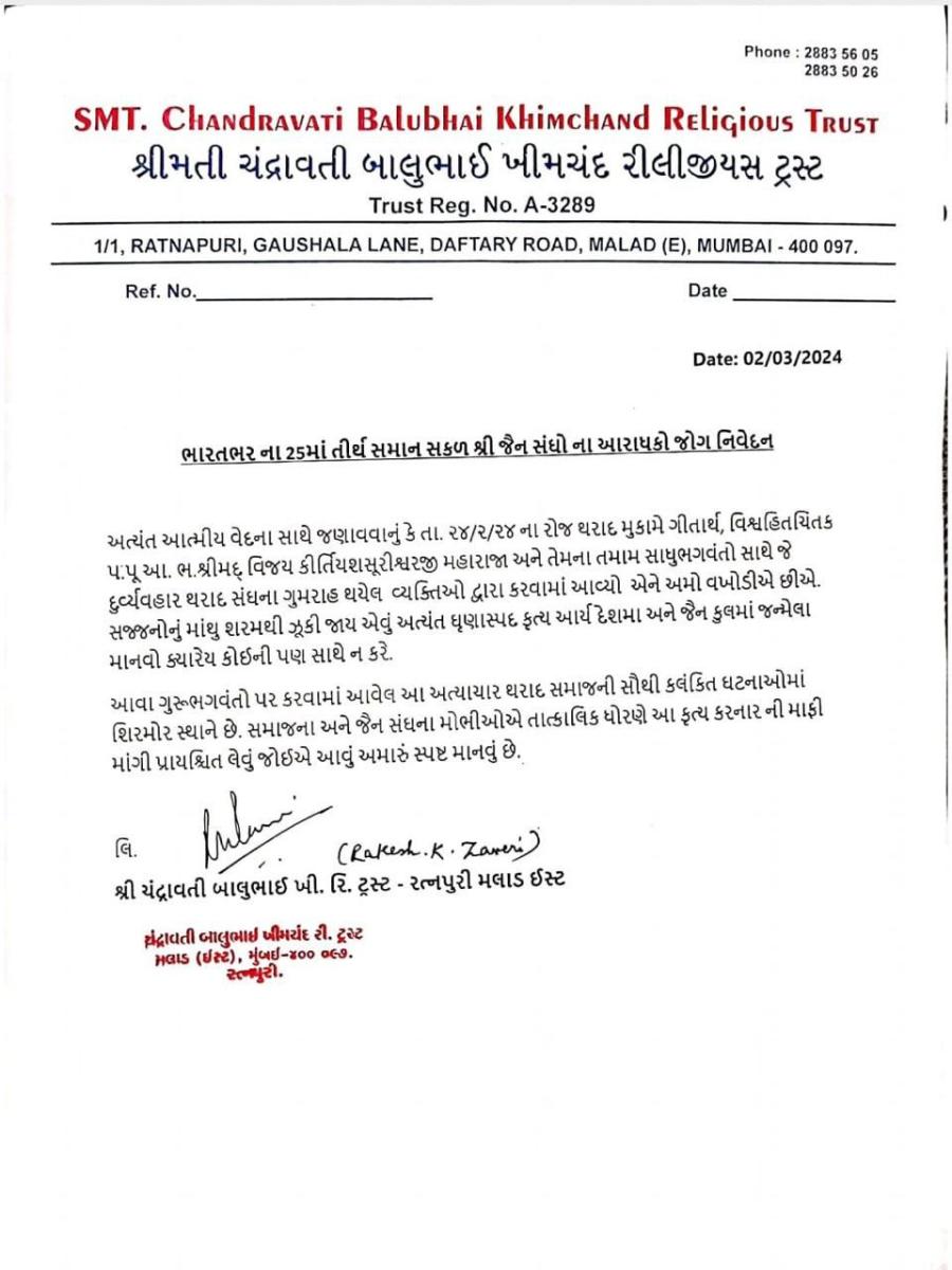 ઘટના બાદ સત્ય બતાવતું ભોરોલ તીર્થનું નિવેદન