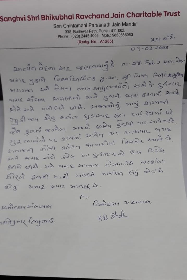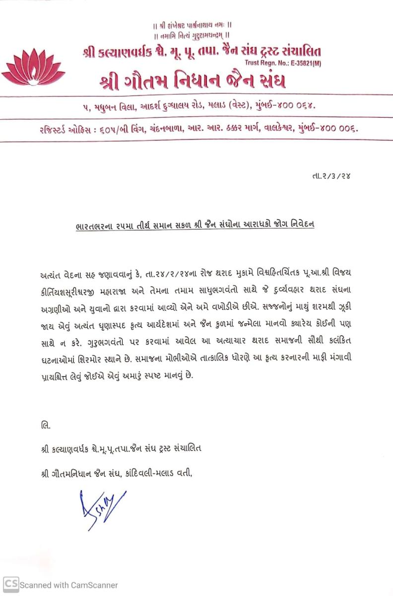 ઘટનાને વખોડતા વિવિધ સંઘોના પત્રો